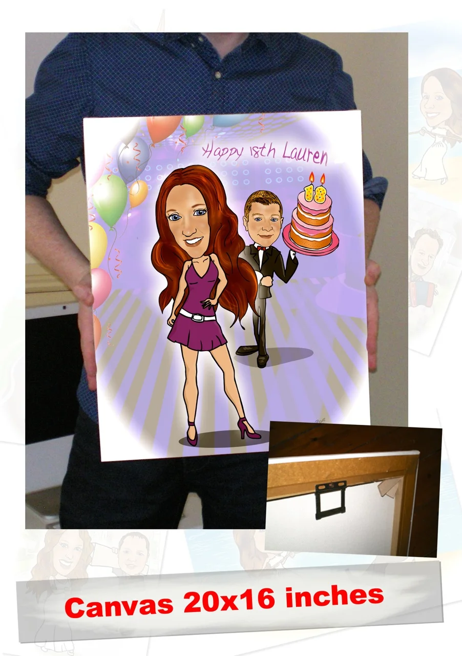 - You receive your cartoon (Framed, Canvas, or just the glossy print) in the post.